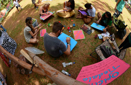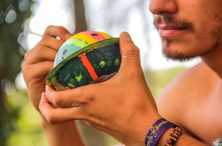 Tiedala é como eu chamo as minhas criações. O nome, que é uma mistura de tiedye com mandala, foi inspirado nas cores do tiedye e na energia das mandalas e retrata como são os momentos de criações próprias ou os das oficinas. Mas o projeto não se limita apenas a isso, e hoje realizo vários projetos em festivais, como diversas oficinas e artigos para decoração.